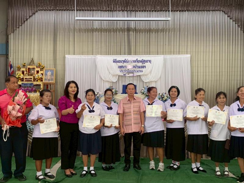 รายละเอียด : วันอังคาร ที่ 16 กันยายน 2568 ตั้งแต่เวลา 08.30 น. ณ โรงเรียนชุมชนบ้านเพชร (วันครู 2500) นำโดย นายไพฑูรย์ ศุภวัชโรบล นายกเทศมนตรีตำบลบ้านเพชร มอบหมายให้กองสวัสดิการสังคม ดำเนินการจัดกิจกรรมโรงเรียนผู้สูงอายุ ภายใต้โครงการพัฒนาศักยภาพผู้สูงอายุเทศบาลตำบลบ้านเพชร ประจำปีงบประมาณ พ.ศ. 2568 โดยร่วมกับเจ้าหน้าที่จากศูนย์ส่งเสริมการเรียนรู้ระดับอำเภอบำเหน็จณรงค์ มาร่วมทำกิจกรรม ภายในงาน ช่วงเช้ามีพิธีมอบเกียรติบัตรจบการศึกษาให้แก่นักเรียนผู้สูงอายุฯ ประจำปีการศึกษา พ.ศ. 2568 และช่วงบ่ายมีกิจกรรมนันทนาการ การออกกำลังกาย เพื่อส่งเสริมความรู้ในการดูแลสุขภาพกาย จิตใจ และโภชนาการแก่ผู้สูงอายุ ส่งเสริมกิจกรรมการออกกำลังกายเพื่อสุขภาพ รวมถึงการอนุรักษ์ประเพณี วัฒนธรรม และภูมิปัญญาชาวบ้านให้แก่ผู้สูงอายุ