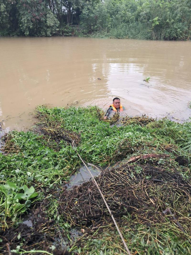 ดำเนินการทำความสะอาดลำคลองคำปิง บริเวณ สวนเฉลิมพระเกียรติพระราชพิธีบรมราชาภิเษกฯ หมู่ที่ 21. โดยการกำจัดวัชพืชและผักตบชวาที่กีดขวางทางน้ำในบริเวณคลองคำปิง (ช่วงหลังศาลเจ้าพ่อบุญจันทร์และพญาลั่นฆ้อง ริมสวนเฉลิมพระเกียรติฯ)