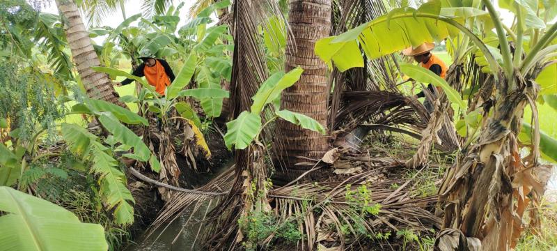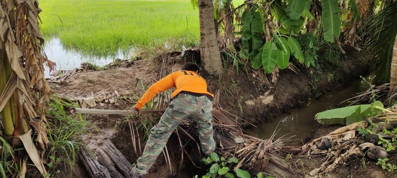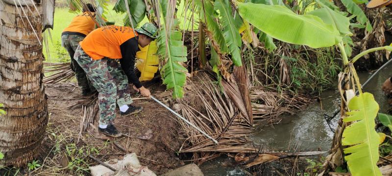 กิจกรรมออกสำรวจเส้นทางระบายน้ำและกำจัดสิ่งกีดขวางทางน้ำออกบริเวณเหมืองที่จะลงคลองสอยดาว