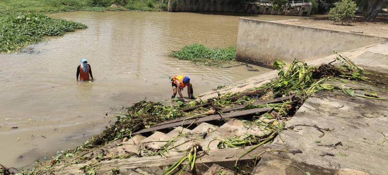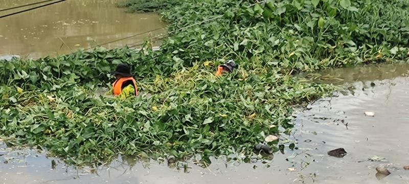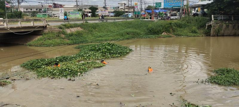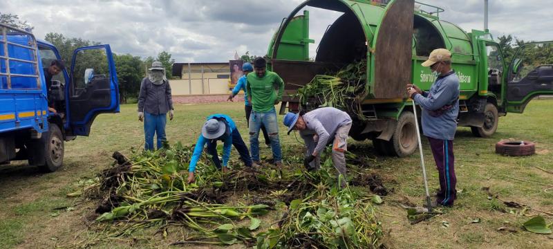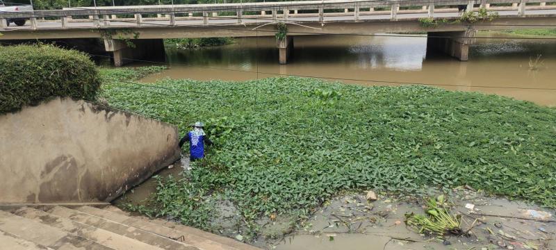 กิจกรรมการทำความสะอาดลำคลองคำปิง กำจัดวัชพืชและผักตบชวาที่กีดขวางทางน้ำ บริเวณสวนเฉลิมพระเกียรติพระราชพิธีบรมราชาภิเษกฯ หมู่ที่ 21.