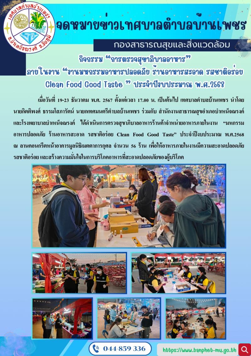 กิจกรรม “การตรวจสุขาภิบาลอาหาร” ภายในงาน “งานมหกรรมอาหารปลอดภัย ร้านอาหารสะอาด รสชาติอร่อย Clean Food Good Taste ” ประจำปีงบประมาณ พ.ศ.2568