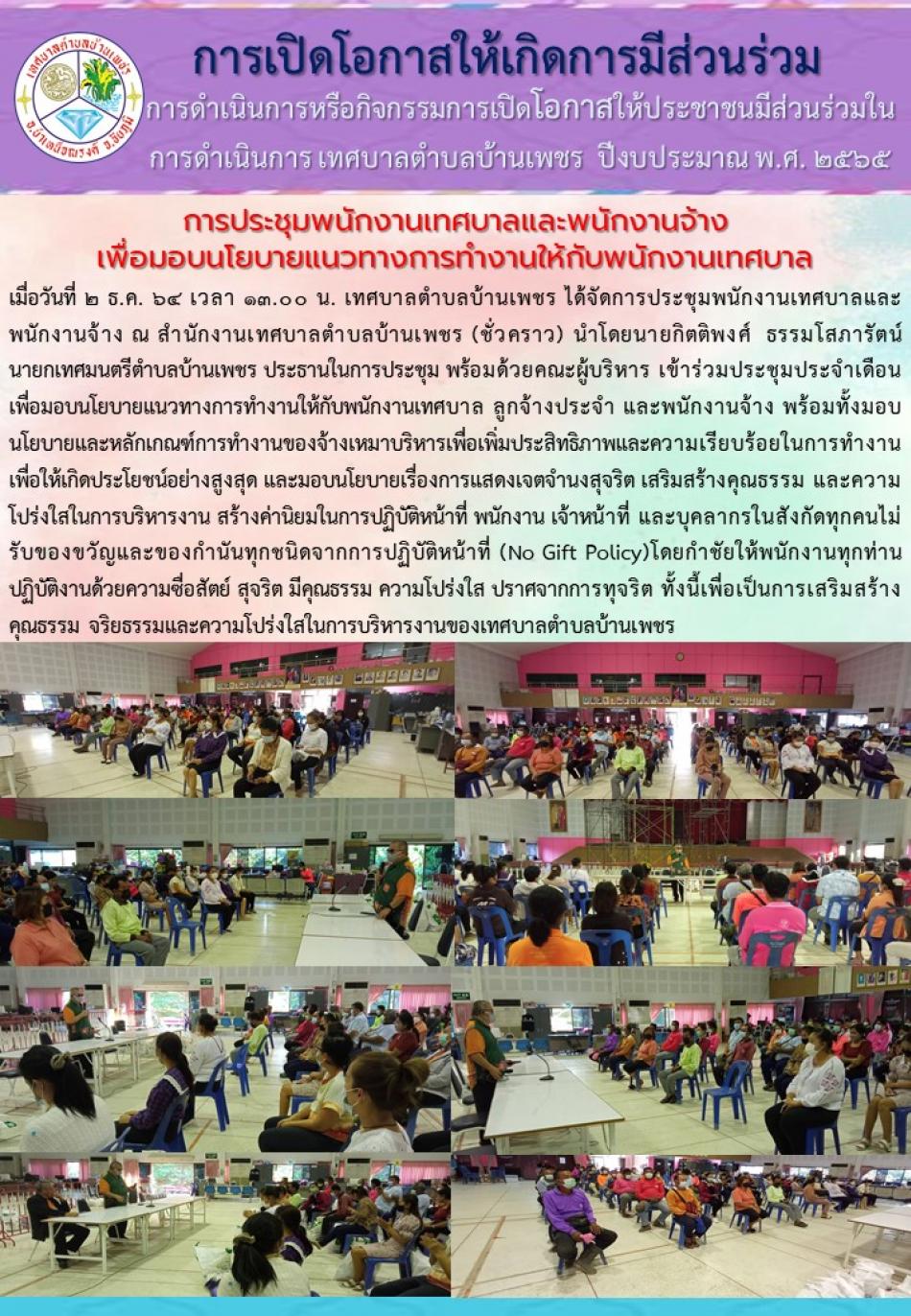 การประชุมพนักงานเทศบาลและพนักงานจ้าง เพื่อมอบนโยบายแนวทางการทำงานให้กับพนักงานเทศบาล2565 [2 ธันวาคม 2564]