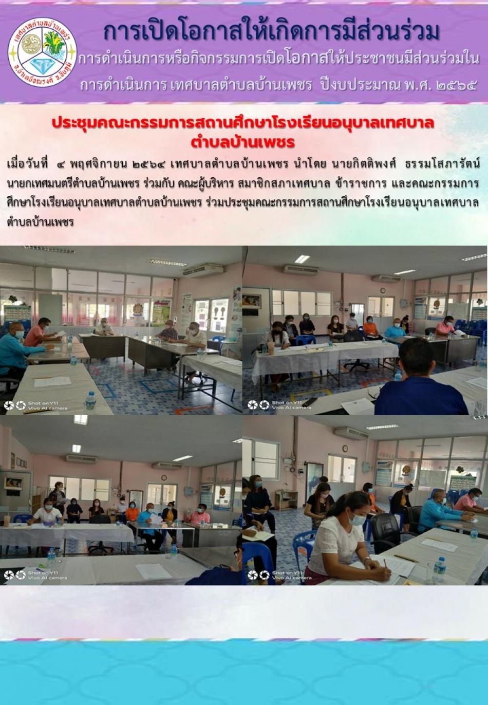 ประชุมคณะกรรมการสถานศึกษาโรงเรียนอนุบาลเทศบาล ตำบลบ้านเพชร 2565 [4 พฤศจิกายน 2564]
