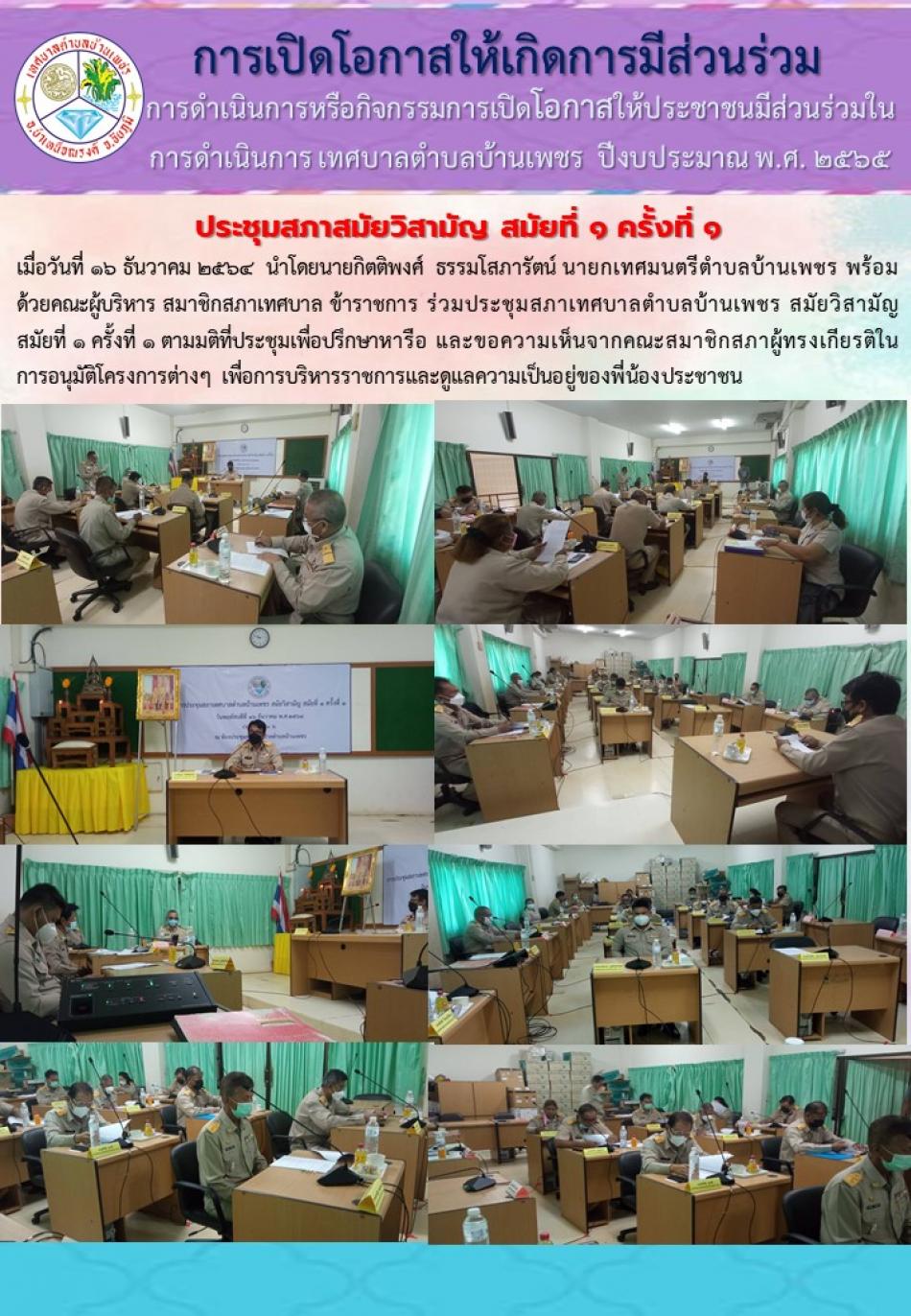 ประชุมสภาเทศบาลตำบลบ้านเพชร สมัยวิสามัย สมัยที่ 1 ครั้งที่ 1 [16 ธันวาคม 2564]