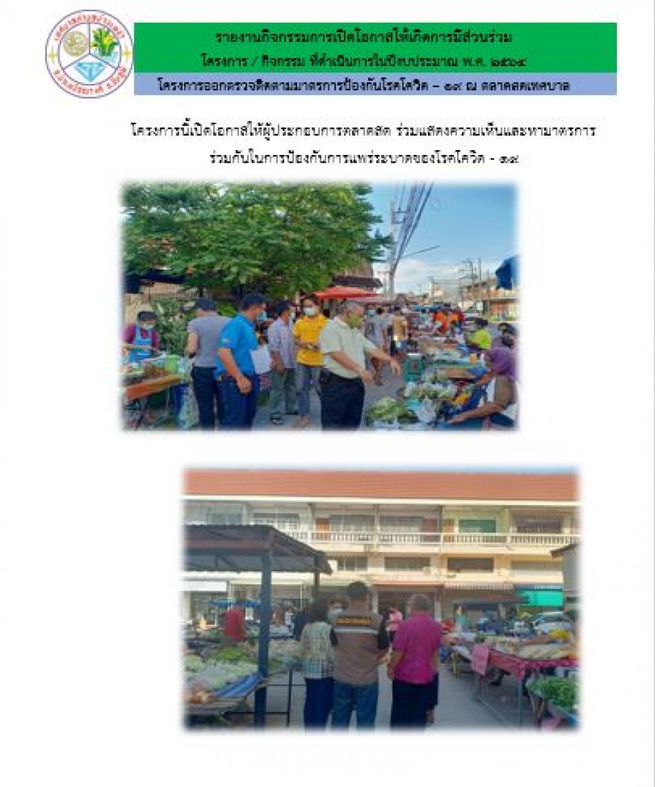 โครงการออกตรวจติดตามมาตรการป้องกันโรคโควิด – 19 ณ ตลาดสดเทศบาล [14 พฤษภาคม 2564]