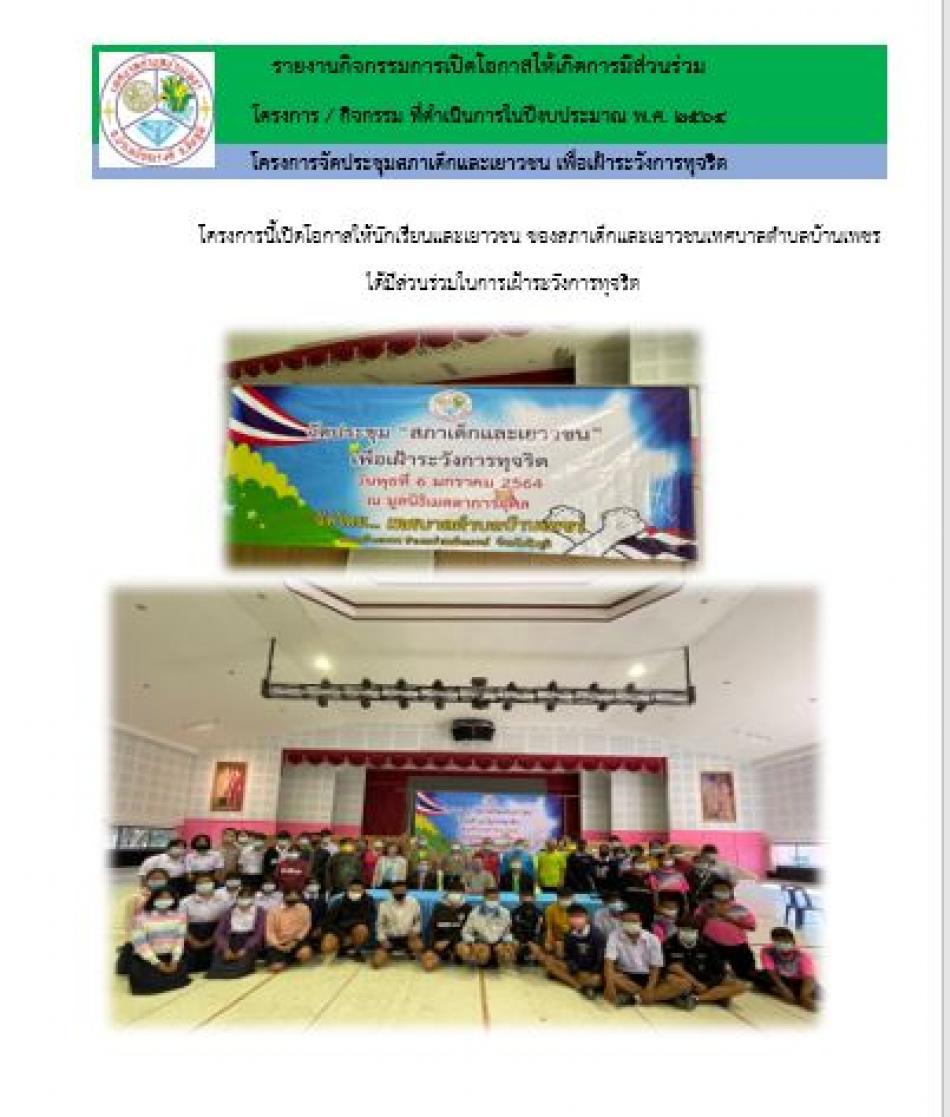 โครงการจัดประชุมสภาเด็กและเยาวชน เพื่อเฝ้าระวังการทุจริต [14 พฤษภาคม 2564]