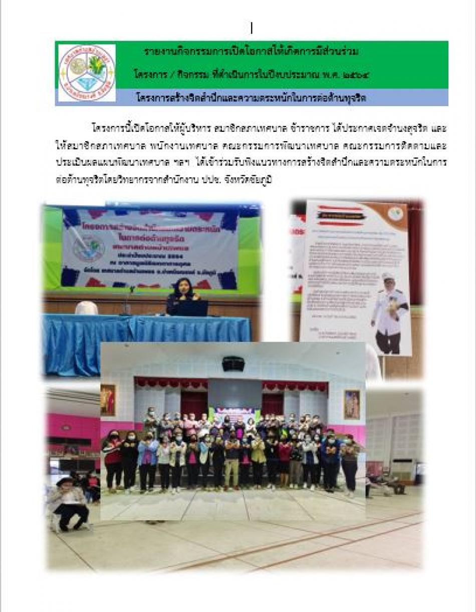 โครงการสร้างจิตสำนึกและความตระหนักในการต่อต้านทุจริต [14 พฤษภาคม 2564]