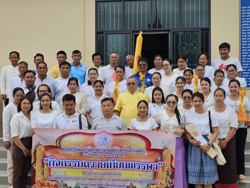 วันที่ 19 กรกฎาคม พ.ศ. 2567 ตั้งแต่เวลา 09.00 น . เทศบาลตำบลบ้านเพชร นำโดย นายกิตติพงศ์ ธรรมโสภารัตน์ นายกเทศมนตรีตำบลบ้านเพชร คณะผู้บริหาร สมาชิกสภาเทศบาล ข้าราชการ พนักงาน และลูกจ้าง เทศบาลตำบลบ้านเพชร ร่วมกับโรงเรียนอนุบาลเทศบาลตำบลบ้านเพชร และศูนย์พัฒนาเด็กเล็กเทศบาลตำบลบ้านเพชร ดำเนินกิจกรรมถวายเทียนพรรษาและผ้าอาบน้ำฝนเนื่องในโอกาสวันเข้าพรรษา ประจำปี 2567 โดยถวายตามวัดต่างๆในเขตเทศบาลตำบลบ้านเพชร ได้แก่วัดเพชรภูมิสุวรรณวราราม, วัดเพชรวิศยาราม, วัดเพชรดอนยาง และวัดประชาสรรค์ตามลำดับ เพื่อเป็นการสืบสานงานบุญประเพณีของชาวไทยและอุปถัมภ์ทำนุบำรุงพระพุทธศาสนาให้อยู่กับคนไทยสืบไป ทุกคนเมื่อทำบุญแล้วแต่อิ่มเอมเปรมปรีในโอกาศที่ได้ทำบุญในครั้งนี้อีกด้วย