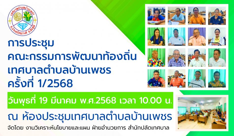 การประชุมคณะกรรมการพัฒนาท้องถิ่นเทศบาลตำบลบ้านเพชร ครั้งที่ 1/2568