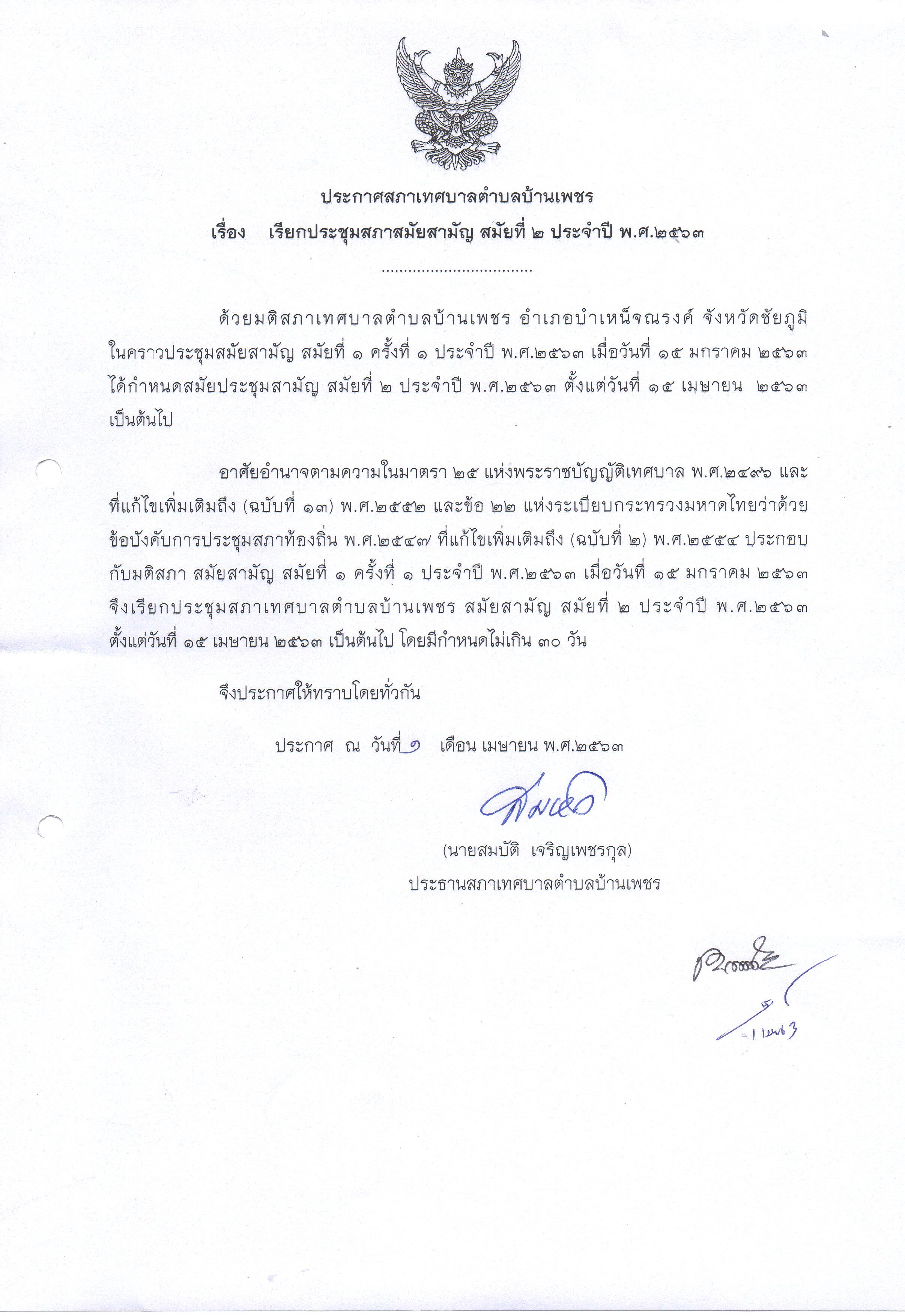 เรียกประชุมสภาสมัยสามัญ สมัยที่ 2 ประจำปีพ.ศ.2563