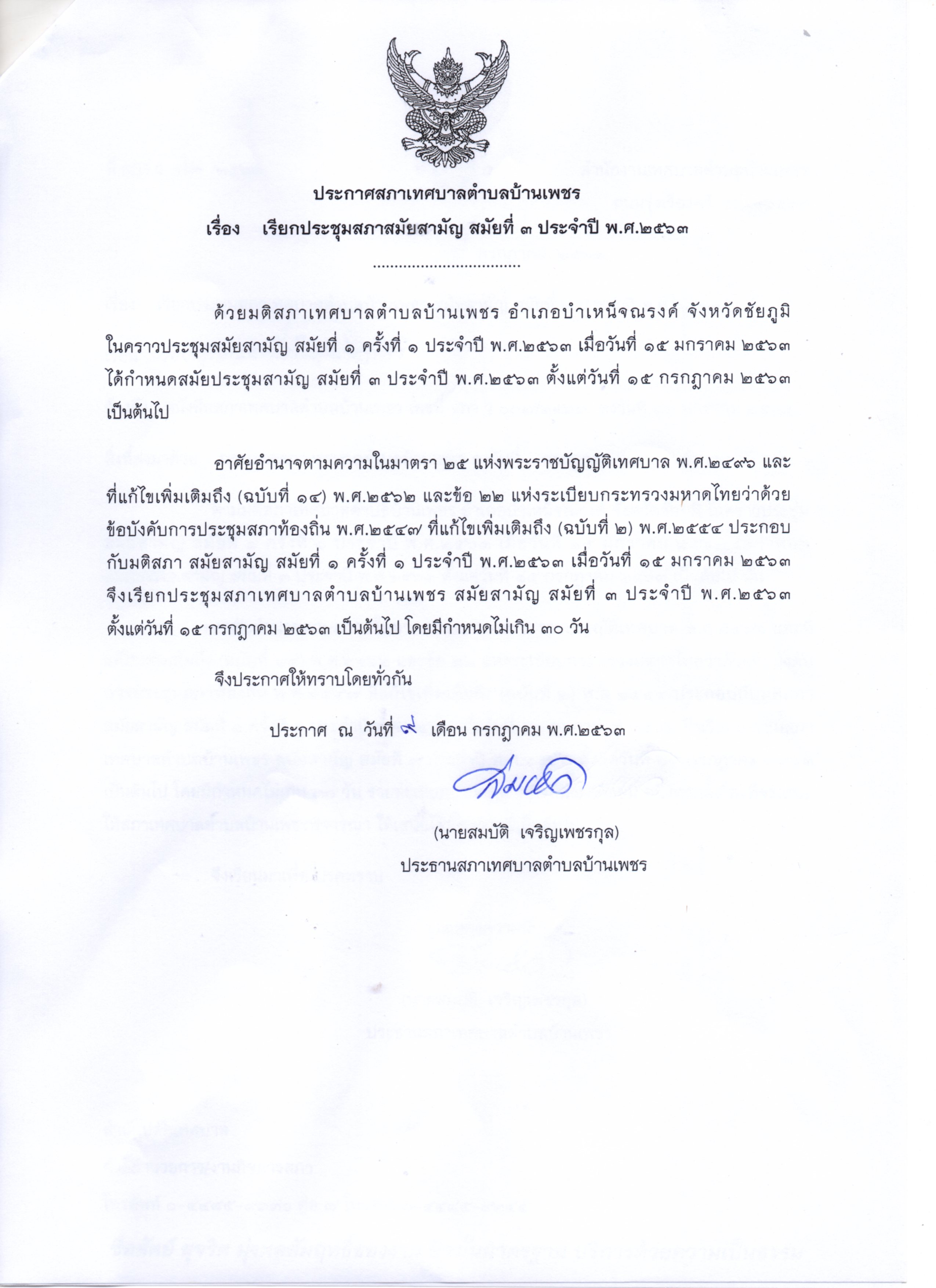 เรียกประชุมสภาสมัยสามัญ สมัยที่ 3 ประจำปีพ.ศ.2563