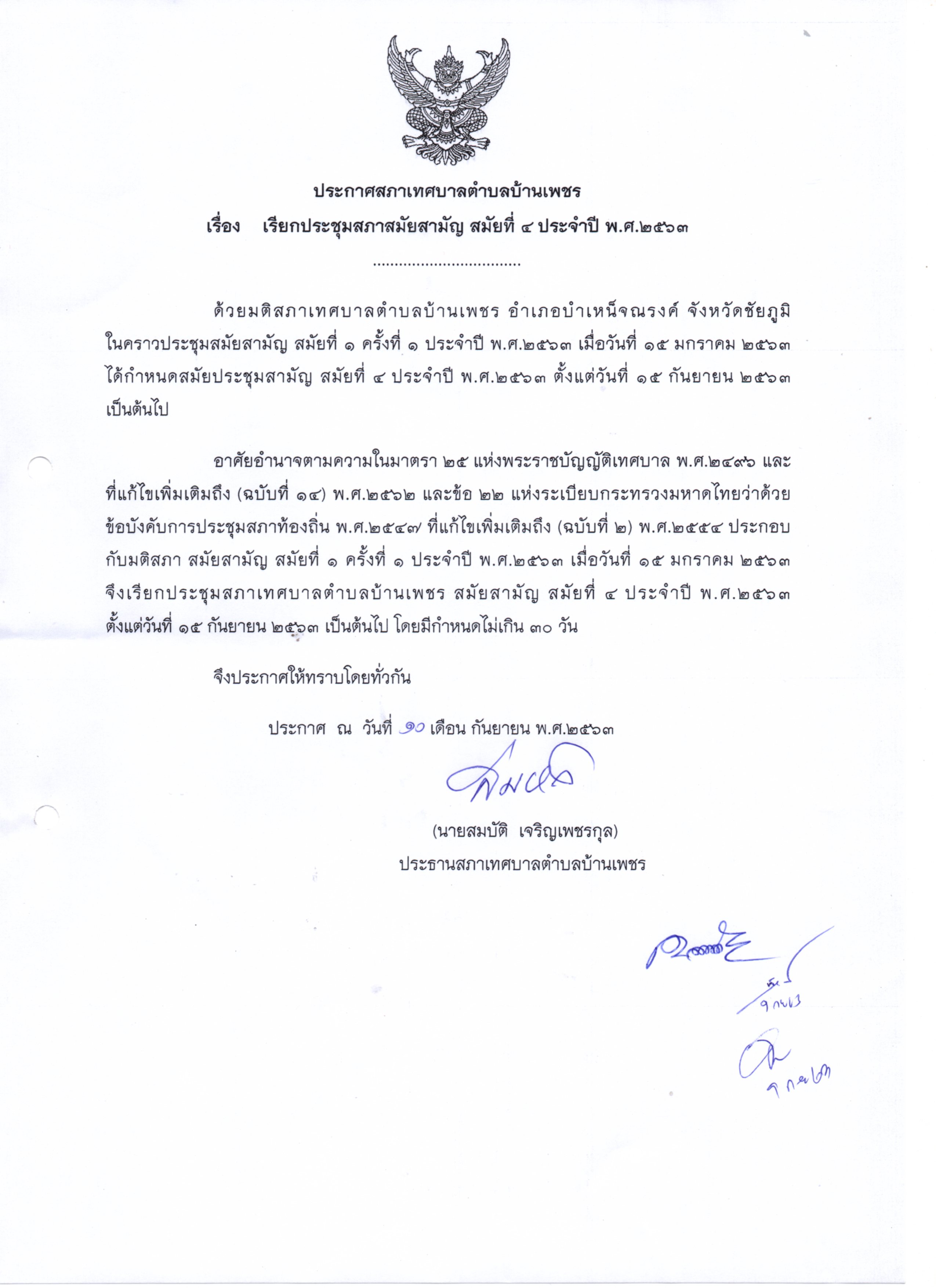เรียกประชุมสภาสมัยสามัญ สมัยที่ 4 ประจำปีพ.ศ.2563