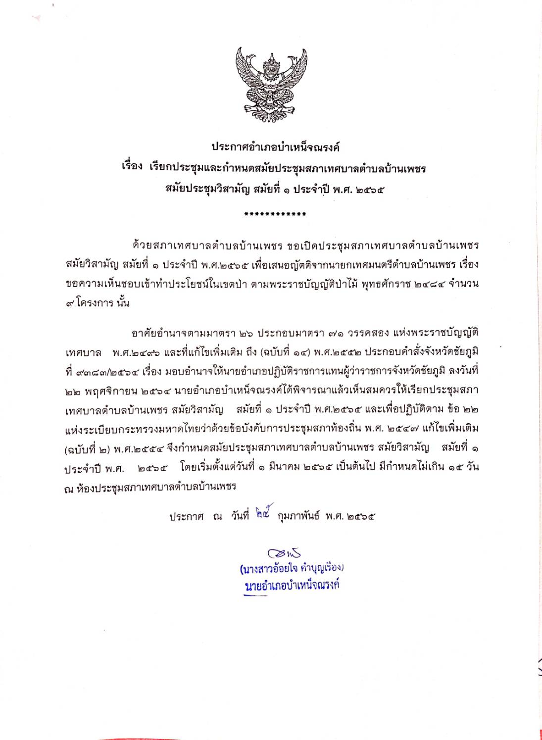 เรียกประชุมสภาสมัยวิสามัญ สมัยที่ 1 ประจำปี พ.ศ.2565
