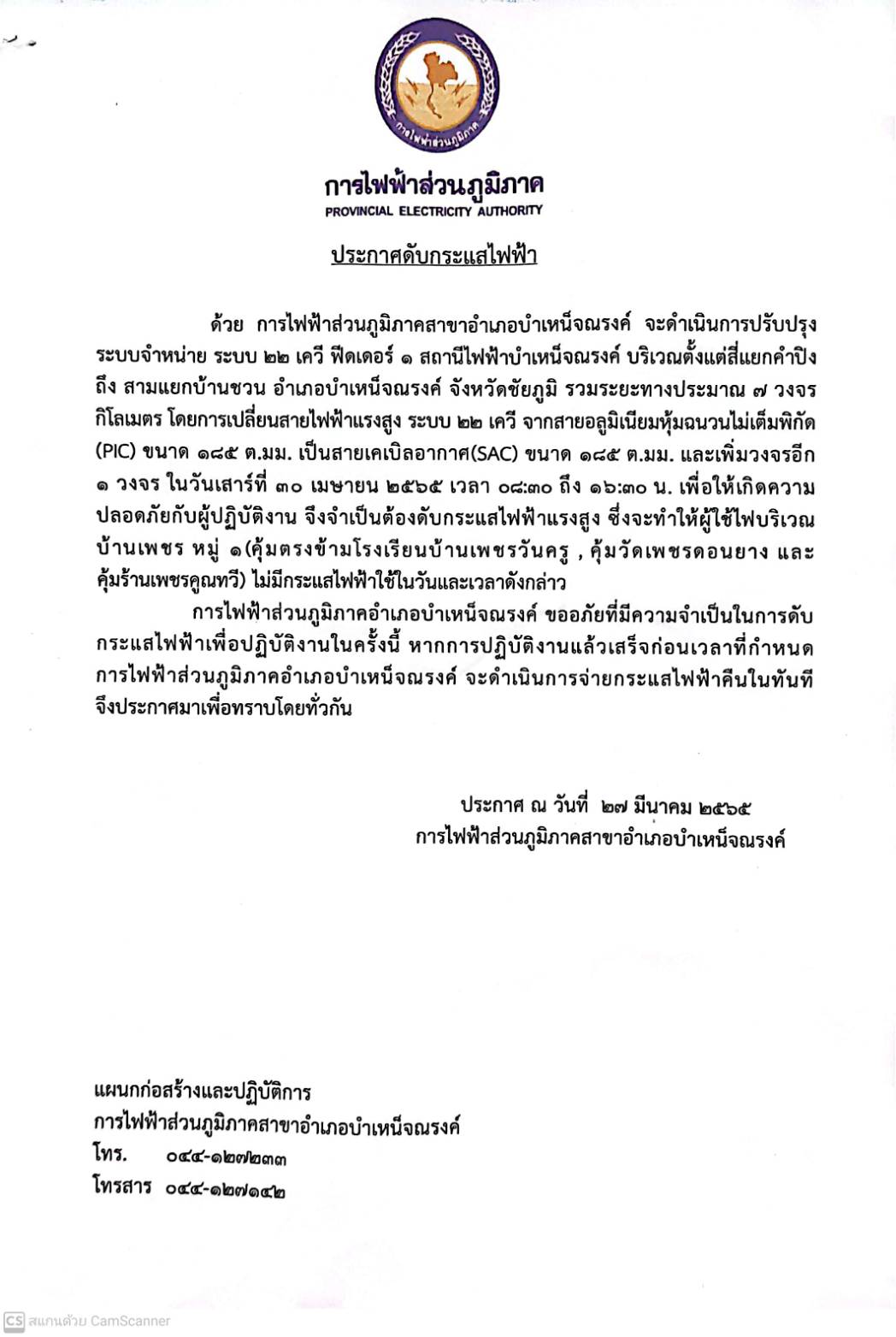ประกาศการไฟฟ้าส่วนภูมิภาค เรื่อง ประกาศดับกระไฟฟ้า
