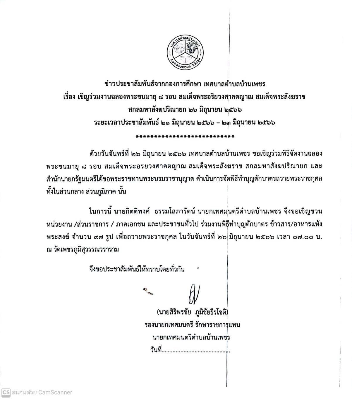 รายละเอียด : #ขอเชิญพีน้องประชาชนชาวเทศบาลตำบลบ้านเพชรและพื้นที่ใกล้เคียง #ร่วมน้อมถวายพิธีฉลองพระชนมายุ 8 รอบ สมเด็จพระอริยวงศาคตญาณ สมเด็จพระสังฆราช สกลมหาสังฆปริณายก
