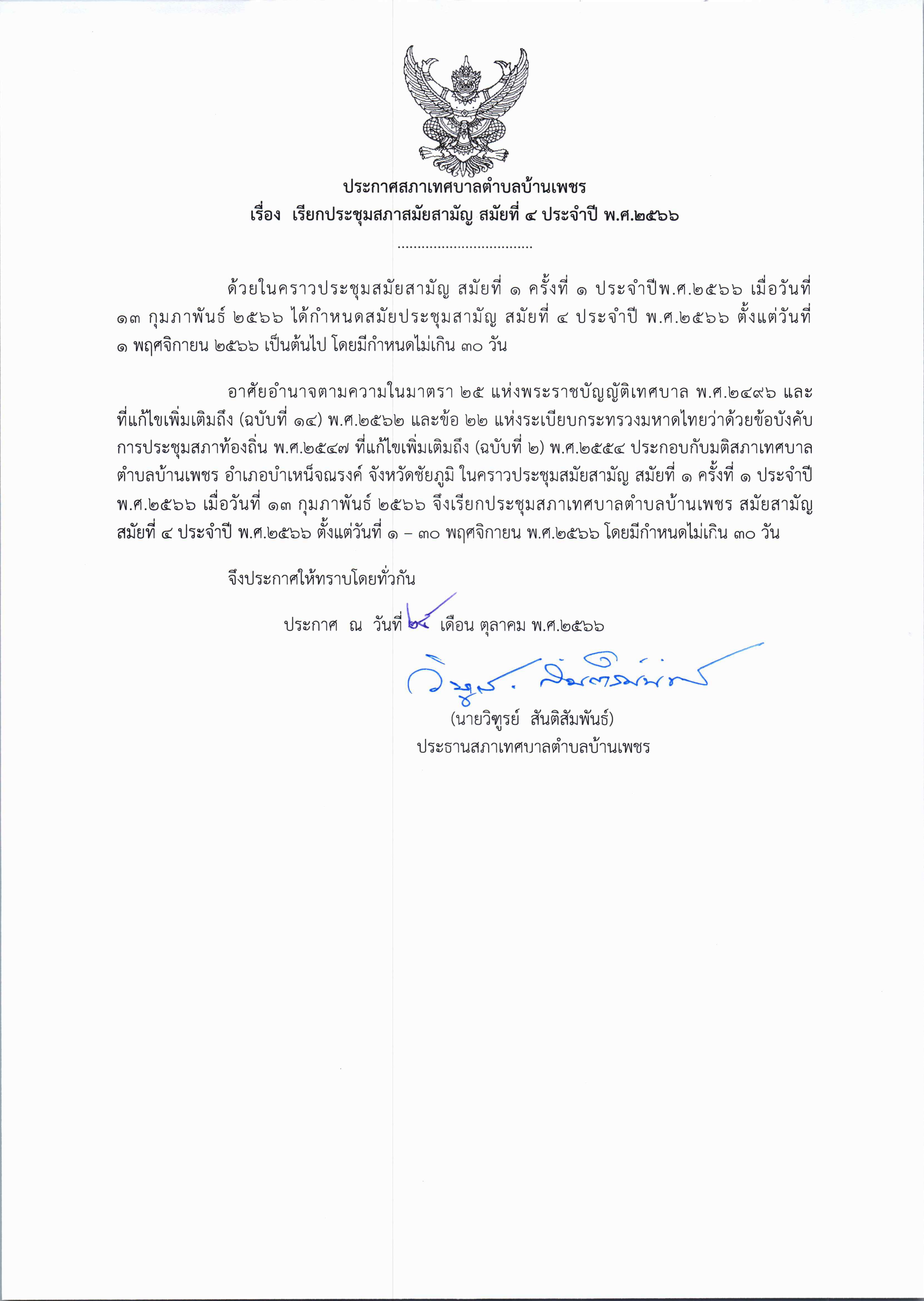 ประกาศ เรื่อง เรียกประชุมสภาสมัยสามัญ สมัยที่ 4 ประจำปี พ.ศ.2566