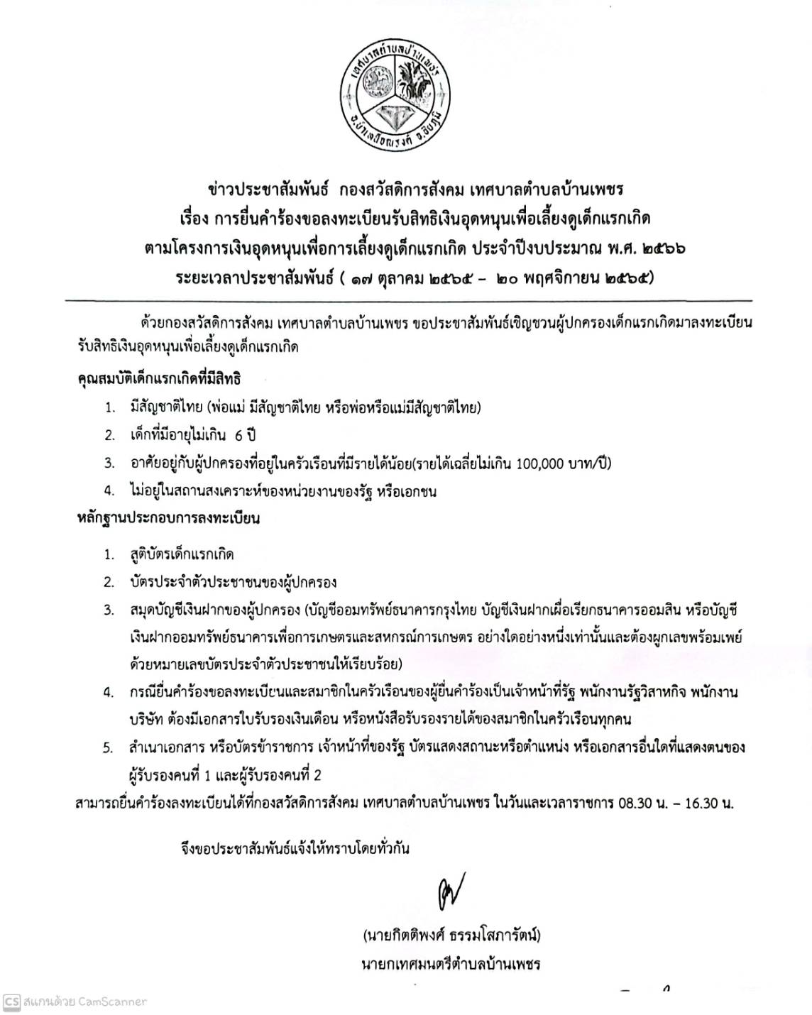 การยื่นคำร้องขอลงทะเบียนรับสิทธิเงินอุดหนุนเพื่อเลี้ยงดูเด็กแรกเกิด ตามโครงการเงินอุดหนุนเพื่อการเลี้ยงดูเด็กแรกเกิด ประจำปีงบประมาณ พ.ศ. 2566