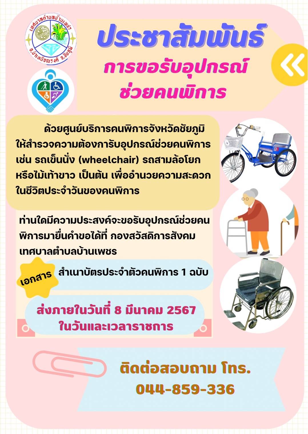 ชื่อเรื่อง : ประชาสัมพันธ์การขอรับอุปกรณ์ช่วยคนพิการ