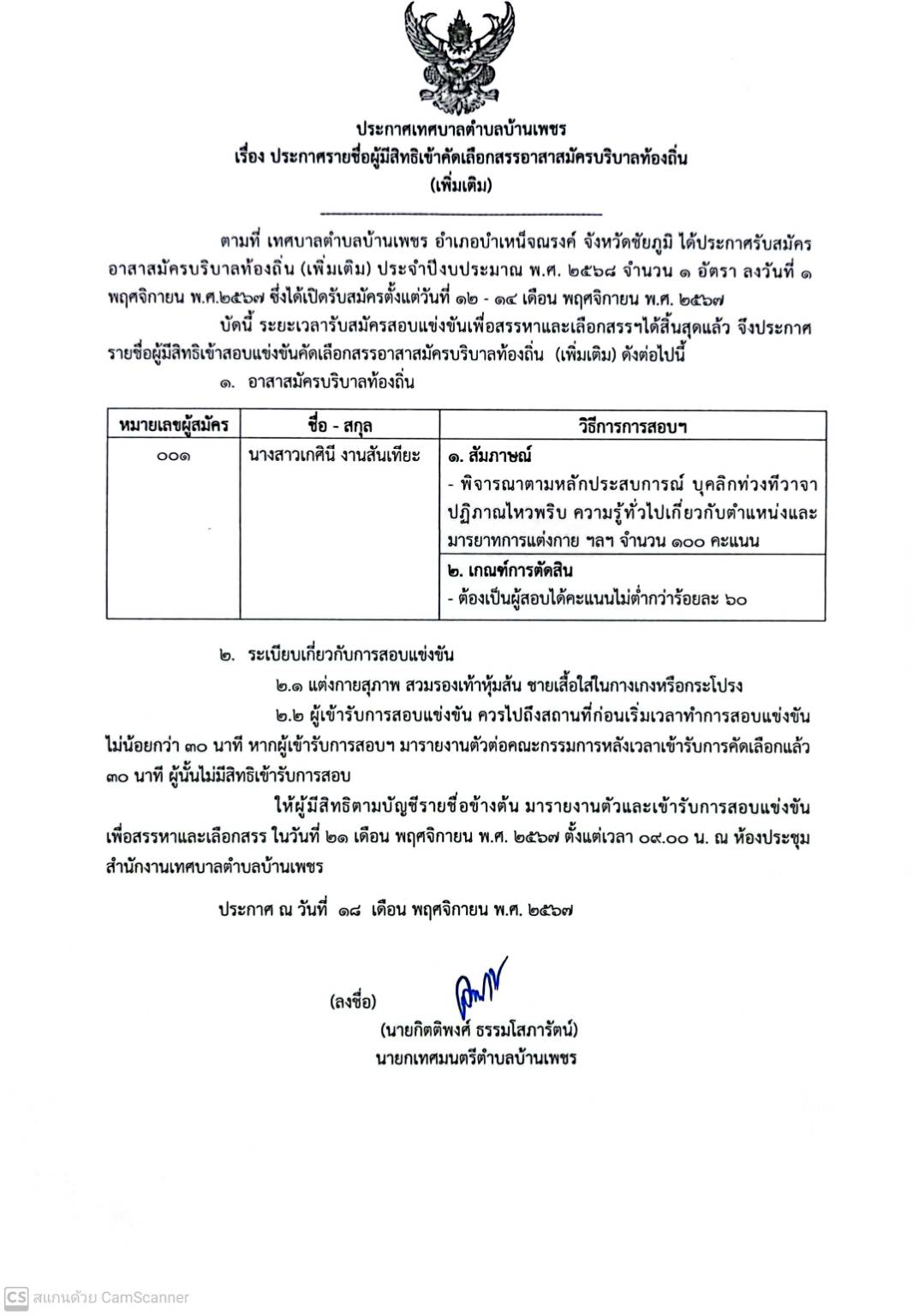 ประกาศ เรื่อง ประกาศรายชื่อผู้มีสิทธิเข้าคัดสรรอาสาสมัครบริบาลท้องถิ่น (เพิ่มเติม)