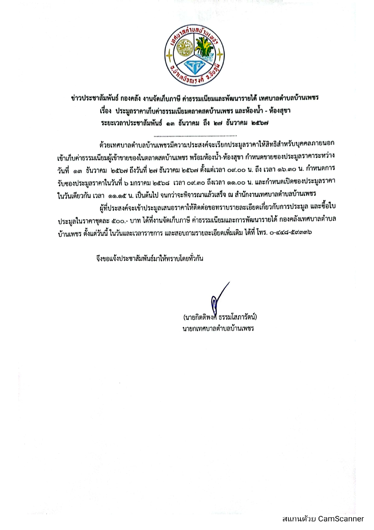 ข่าวประชาสัมพันธ์ เรื่อง ประมูลราคาเก็บค่าธรรมเนียมตลาดสดบ้านเพชร (1)
