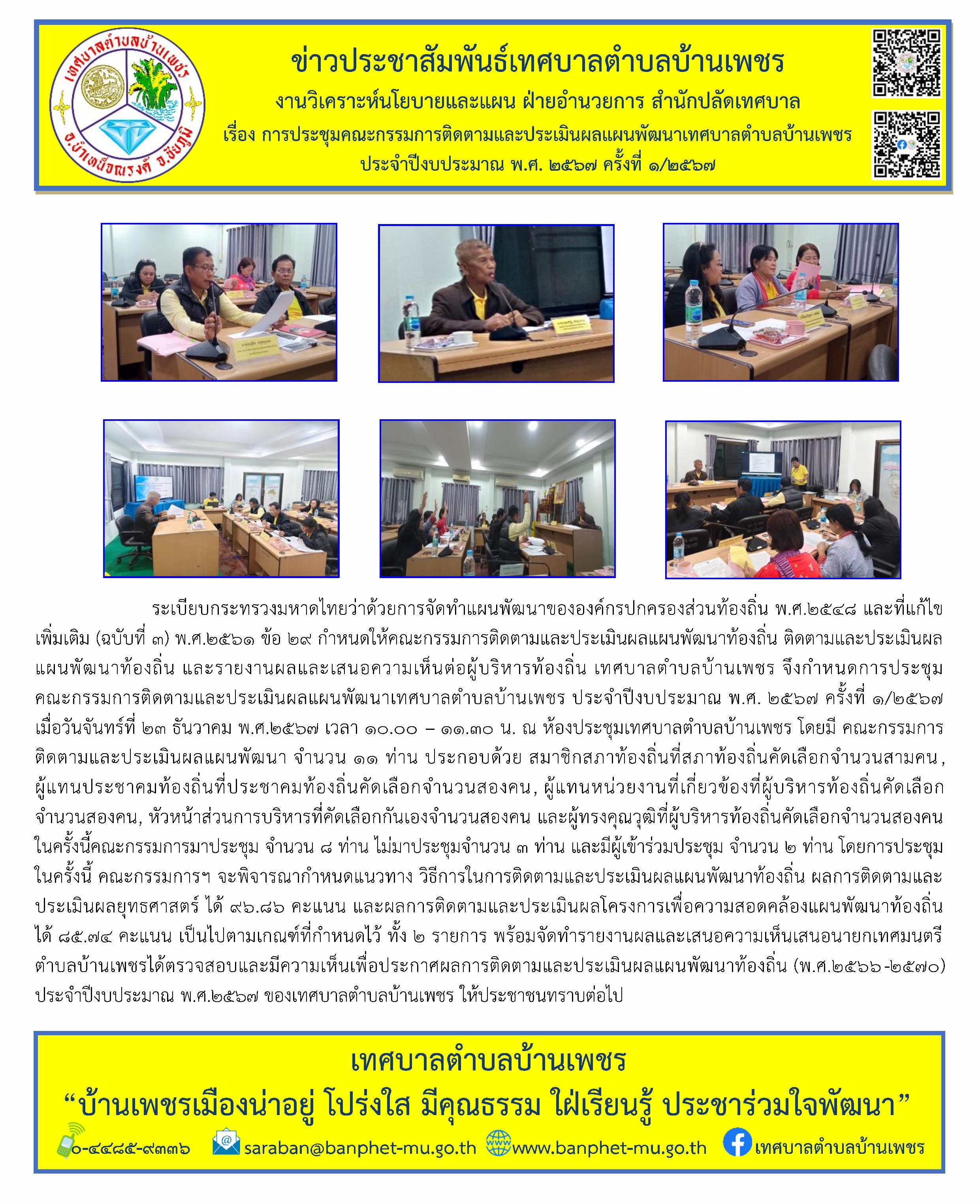 ข่าว-การประชุมคณะกรรมการติดตามและประเมินผลแผนพัฒนาเทศบาลตำบลบ้านเพชร ประจำปีงบประมาณ พ.ศ. 2567 ครั้งที่ 1/2567