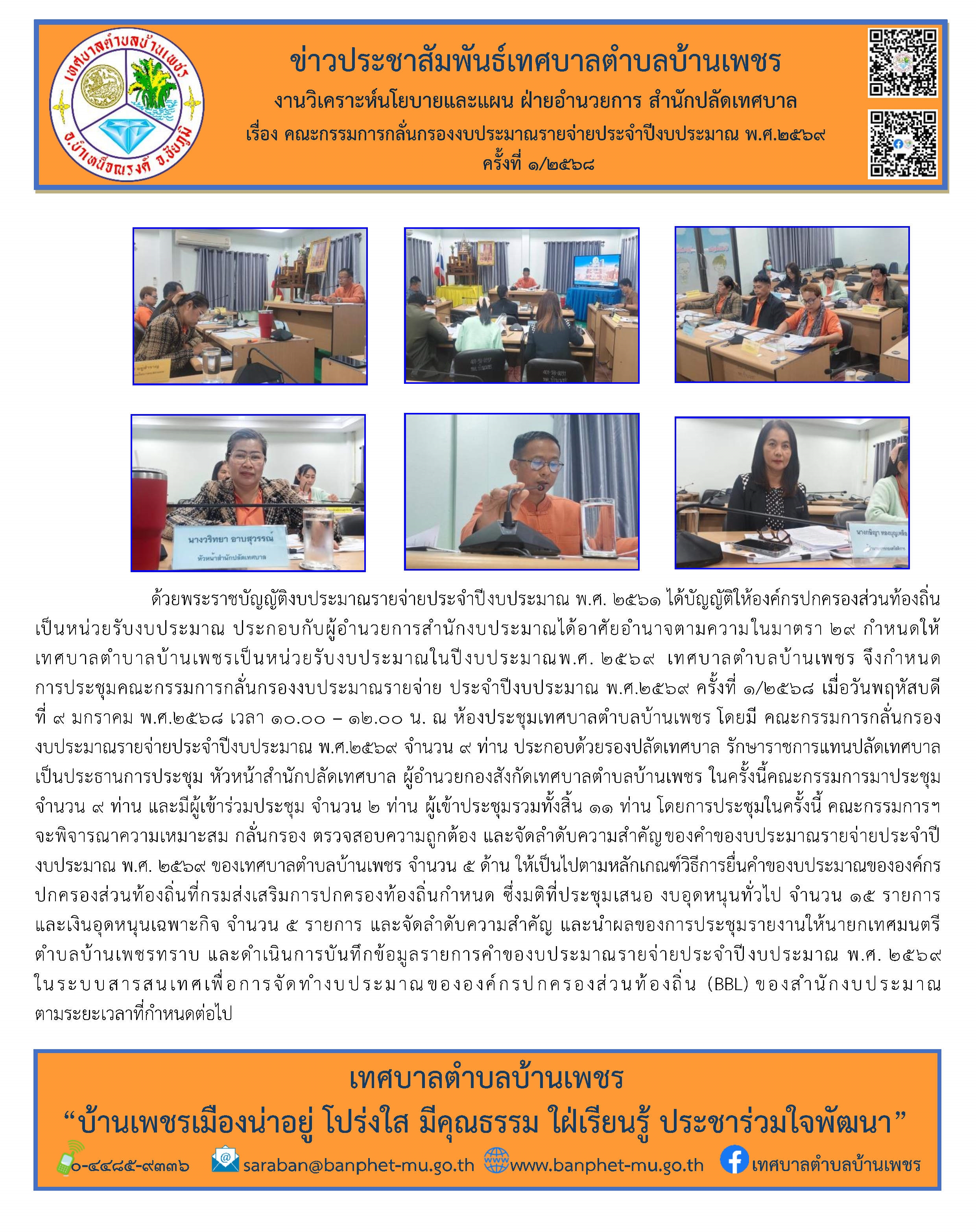 ข่าว-การประชุมคณะกรรมการกลั่นกรองงบประมาณรายจ่าย ประจำปีงบประมาณ พ.ศ.2569 ครั้งที่ 1/2568