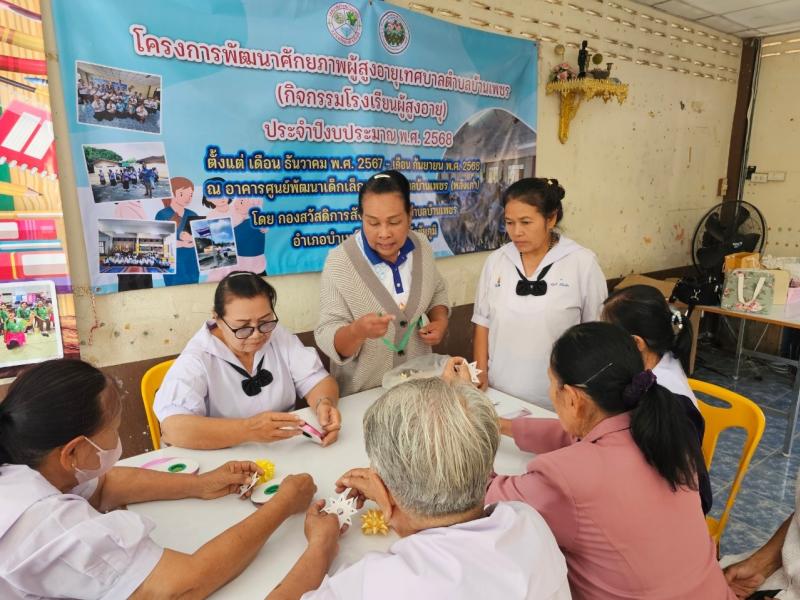รายละเอียด : วันศุกร์ ที่ 24 มกราคม 2568 ตั้งแต่เวลา 08.30 น. ณ ศูนย์พัฒนาเด็กเล็กเทศบาลตำบลบ้านเพชรหลังเก่า นำโดย นายกิตติพงศ์ ธรรมโสภารัตน์ นายกเทศมนตรีตำบลบ้านเพชร มอบหมายให้ กองสวัสดิการสังคมร่วมกับบุคลากรของศูนย์ส่งเสริมการเรียนรู้ระดับอำเภอบำเหน็จณรงค์เพื่อดำเนินกิจกรรมโรงเรียนผู้สูงอายุเทศบาลตำบลบ้านเพชร ภายใต้โครงการฝึกอบรมพัฒนาศักยภาพผู้สูงอายุเทศบาลตำบลบ้านเพชรประจำปีงบประมาณ2568 โดยมีกิจกรรมนันทนาการ กิจกรรมการฝึกอาชีพ อาทิเช่นการทำโบว์ริบบิ้น การทำเหรียญโปรยทานจากริบบิ้นในรูปแบบต่างๆ เพื่อส่งเสริมการฝึกอาชีีพและนำไปสู่การเพิ่มรายได้ในครัวเรือน ส่งเสริมการใช้เวลาว่างให้เกิดประโยชน์รวมถึงการฝึกบริหารกล้ามเนื้อร่างกายและการฝึกสมาธิ