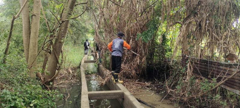 สำรวจทางระบายน้ำ จุดรับน้ำ และกำจัดสิ่งกีดขวางทางน้ำรางระบายน้ำ