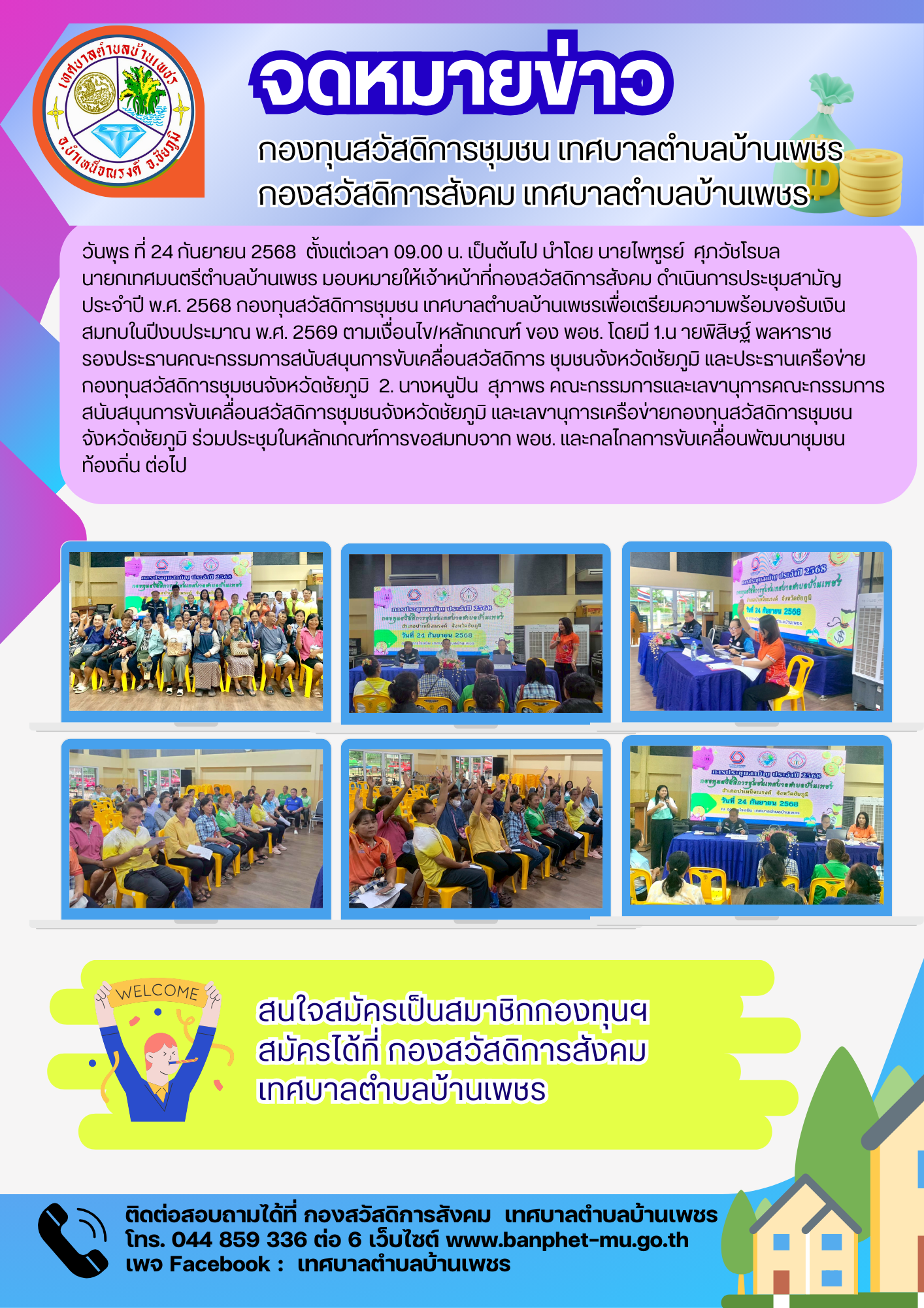 การประชุมสามัญประจำปี พ.ศ. 2568 กองทุนสวัสดิการชุมชน เทศบาลตำบลบ้านเพชร