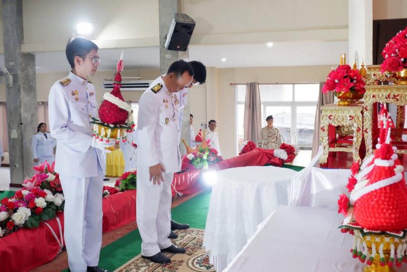 รายละเอียด : เมื่อวันที่ 20 กันยายน พ.ศ. 2568 เทศบาลตำบลบ้านเพชร นำโดย นายไพฑูรย์ ศุภวัชโรบล นายกเทสมนตรีตำบลบ้านเพชร พร้อมด้วยคณะผู้บริหาร สมาชิกสภาเทศบาล หัวหน้าส่วนราชการ พนักงาน ลูกจ้าง พนักงานจ้าง เทศบาลตำบลบ้านเพชร เข้าร่วมกิจกรรมเฉลิมพระเกียรติพระบาทสมเด็จพระปรเมนทรมหาอานันทมหิดลพระอัฐมรามาธิบดินทร เนื่องในโอกาสวันคล้ายวันพระบรมราชสมภพครบ 100 ปี ณ หอประชุมที่ว่าการอำเภอบำเหน็จณรงค์ ช่วงแรกมีพิธีเจริญพระพุทธมนต์ ทำบุญตักบาตรข้าวสารอาหารแห้งถวายพระราชกุศล จากนั้นมีพิธีวางพานพุ่มดอกไม้ถวายราชสักการะ ร่วมกับส่วนราชการต่างๆ นำโดย ว่าที่เรือตรี ธราธิป พหลภิญโญ นายอำเภอบำเหน็จณรงค์ เป้นประธานในพิธี
