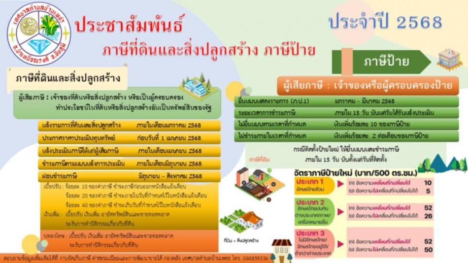 กำหนดการชำระภาษีที่ดินและสิ่งปลูกสร้าง ภาษาษีป้าย ประจำปี 2568 [20 พฤศจิกายน 2567]
