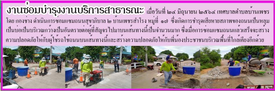 งานซ่อมแซมถนนสุขาภิบาล 2 สี่แยกบ้านเพชรสำโรงหมู่ที่ 17 [24 มิถุนายน 2564]
