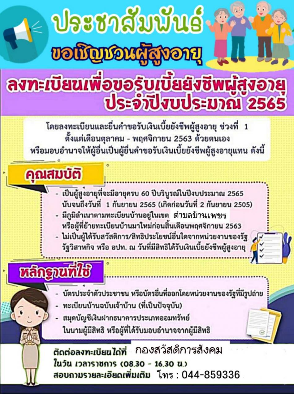 การลงทะเบียนผู้สูงอายุ ประจำปีงบประมาณ 2565 [3 ตุลาคม 2564]