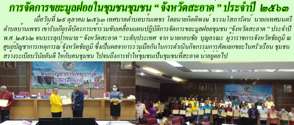 การกำจัดขยะมูลฝอยในชุมชน "จังหวัดสะอาด" ประจำปี ๒๕๖๓