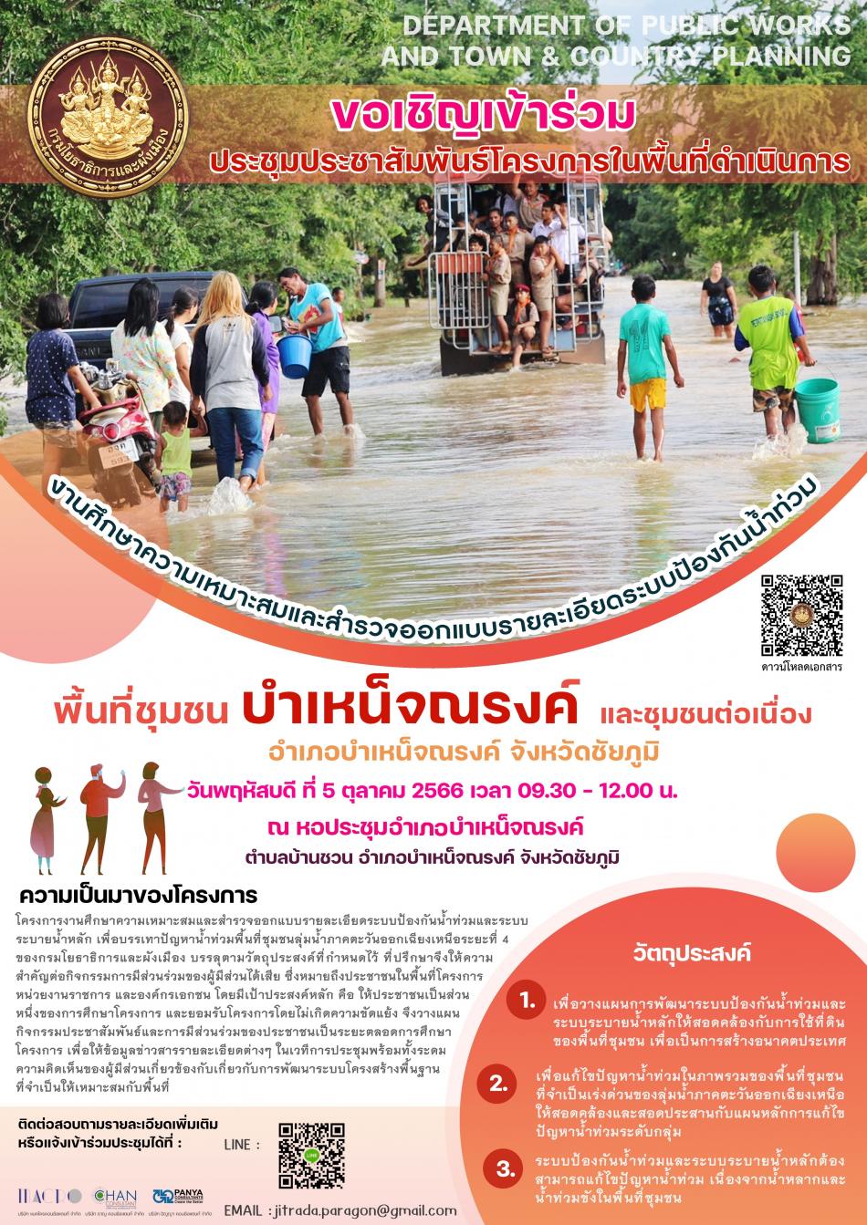 การประชุมชี้แจงรายละเอียดและประชาสัมพันธ์โครงการ ครั้งที่ 1 ระบบระบายน้ำหลัก เพื่อบรรเทาปัญหาน้ำท่วมพื้นที่ชุมชนลุ่มน้ำภาคตะวันออกเฉียงเหนือ ระยะที่ 4 วันที่ 5 ตุลาคม 2566 ณ หอประชุมอำเภอบำเหน็จณรงค์