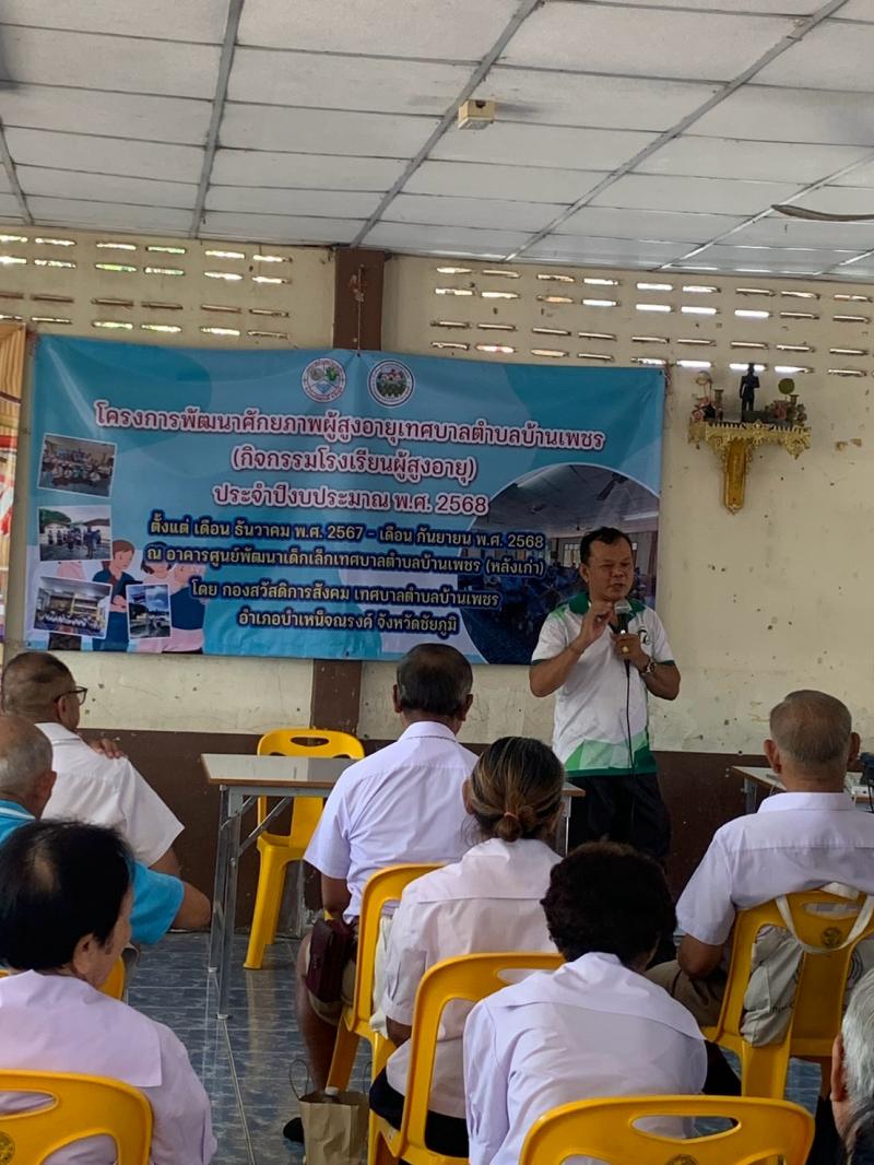 รายละเอียด : วันศุกร์ ที่ 14 มีนาคม 2568 ตั้งแต่เวลา 08.30 น. ณ ศูนย์พัฒนาเด็กเล็กเทศบาลตำบลบ้านเพชรหลังเก่า นำโดย นายกิตติพงศ์ ธรรมโสภารัตน์ นายกเทศมนตรีตำบลบ้านเพชร มอบหมายให้ กองสวัสดิการสังคม ดำเนินกิจกรรมโรงเรียนผู้สูงอายุเทศบาลตำบลบ้านเพชร ภายใต้โครงการพัฒนาศักยภาพผู้สูงอายุเทศบาลตำบลบ้านเพชร ประจำปีงบประมาณ 2568 โดยมีกิจกรรมหน้าเสาธง กิจกรรมการออกกำลังกายด้วยผ้าขาวม้า กิจกรรมนันทนาการ กิจกรรมส่งเสริมการเรียนรู้ด้านศาสตร์การแพทย์แผนไทย โดยมีวิทยากรที่มีความรู้ความเชี่ยวชาญด้านแพทย์แผนไทย มาให้ความรู้ในการดูแลสุขภาพด้วยสมุนไพรใกล้ตัวเบื้องต้น วิธีการใช้สมุนไพรอย่างถูกวิธี และประโยชน์ของสมุนไพร พร้อมทั้งสาธิตการพอกเข่าด้วยน้ำสมุนไพรไทยแก้ปวดกล้ามเนื้อ เพื่อส่งเสริมการดูแลตนเองของผู้สูงอายุในด้านการแพทย์แผนไทยที่มีการสืบทอดต่อกันมาเป็นเวลานานและอนุรักษ์การดูแลสุขภาพด้านการแพทย์แผนไทย
