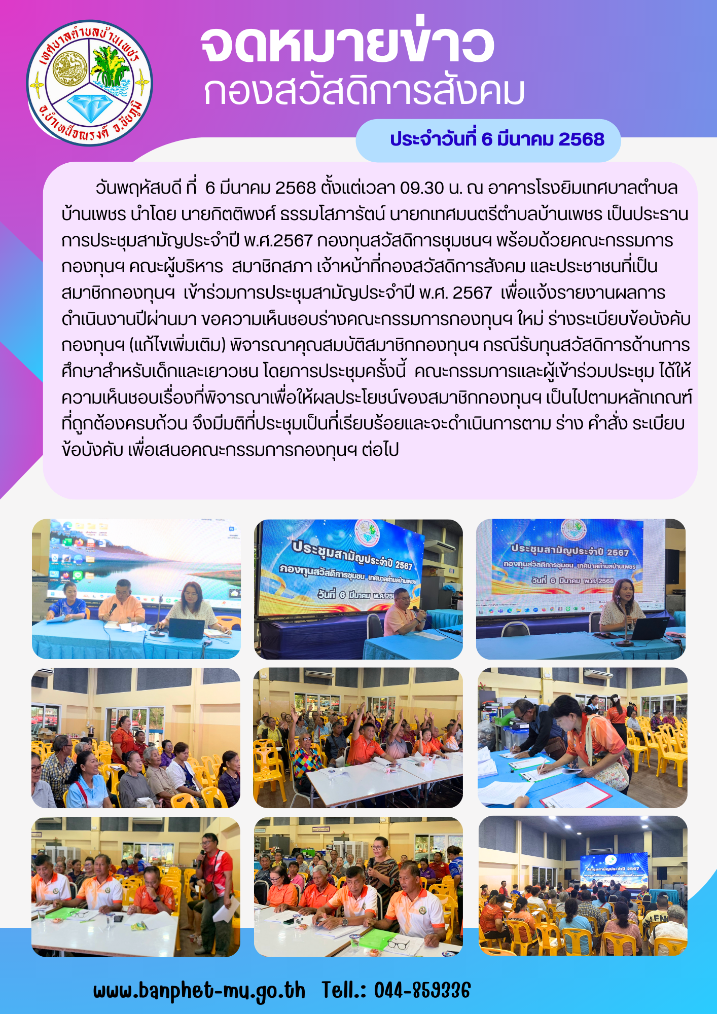 การประชุมสามัญประจำปีกองทุนสวัสดิการชุมชนเทศบาลตำบลบ้านเพชร ประจำปี พ.ศ. 2568