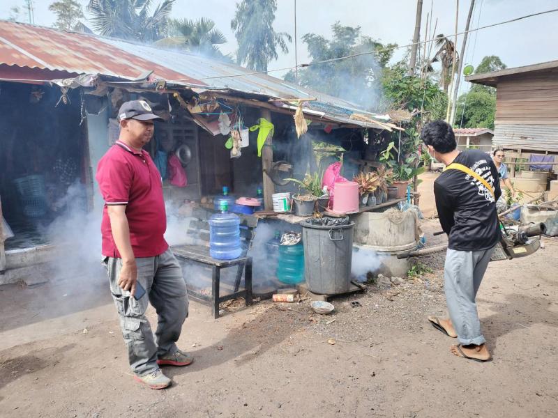 รายละเอียด : เมื่อวันอาทิตย์ ที่ 8 กันยายน พ.ศ. 2567 ตั้งแต่เวลา 09.00 น. เป็นต้นไป เทศบาลตำบลบ้านเพชร นำโดย นายกิตติพงศ์ ธรรมโสภารัตน์ นายกเทศมนตรีตำบลบ้านเพชร มอบหมายให้ กองสาธารณสุขและสิ่งแวดล้อม งานป้องกันและบรรเทาสาธารณภัย เทศบาลตำบลบ้านเพชร ร่วมกับ โรงพยาบาลบำเหน็จณรงค์ และอาสาสมัครสาธารณสุขประจำหมู่บ้าน (อสม.) บ้านตลาดคำปิง ม. 21 ได้ดำเนินการออกพ่นหมอกควันกำจัดยุงลาย เนื่องจากได้รับการรายงานว่า พบผู้ต้องสงสัยอาจผู้ป่วยไข้เลือดออกที่พักอาศัยอยู่ในชุมชน บ้านตลาดคำปิง ม. 21 จึงลงพื้นที่เพื่อดำเนินการออกพ่นหมอกควันกำจัดยุงลายในพื้นที่บ้านผู้ป่วยและบริเวณโดยรอบรัศมี 100 เมตร บ้านตลาดคำปิง ม. 21 เพื่อป้องกันการแพร่ระบาดของโรคไข้เลือดออก ไม่ให้แพร่กระจายออกไปอีกด้วย
