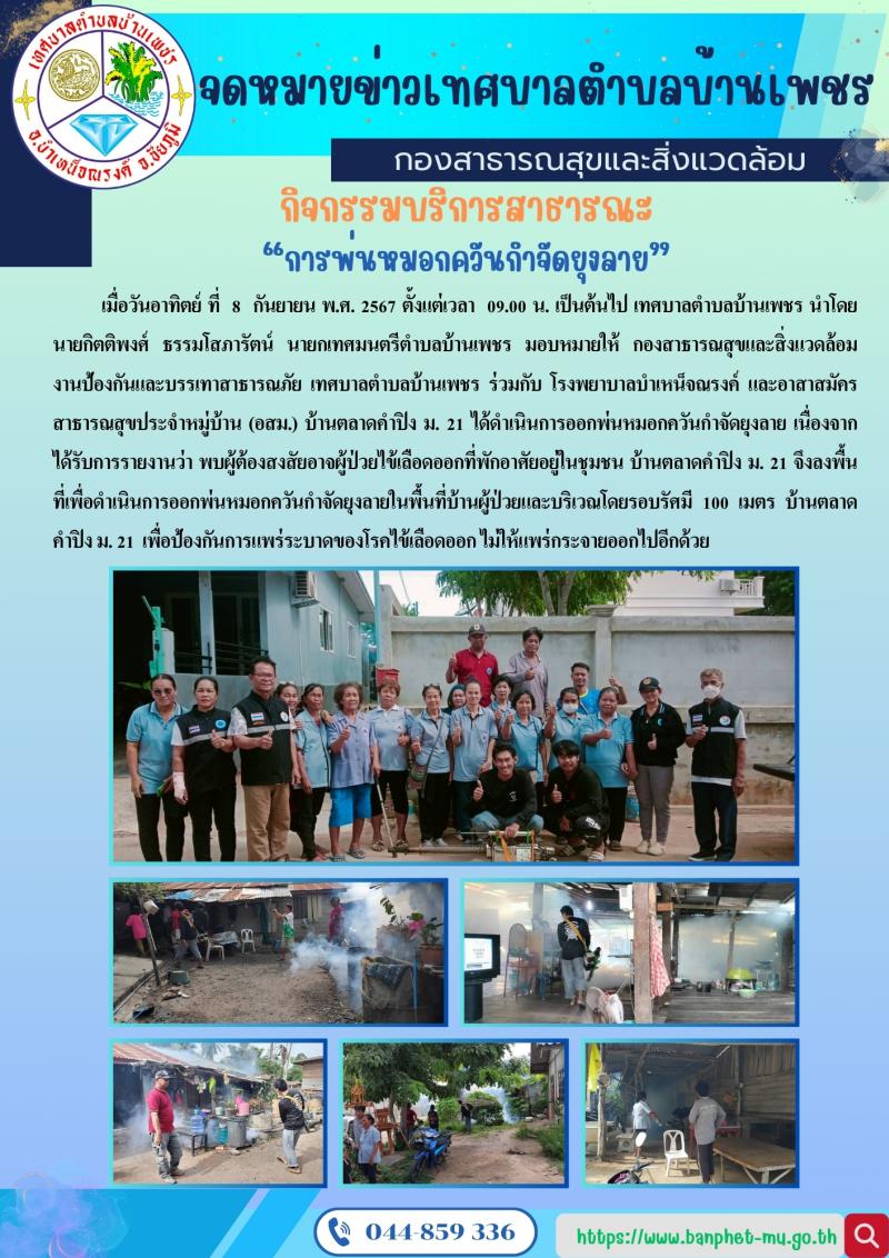 กิจกรรมบริการสาธารณะ “การพ่นหมอกควันกำจัดยุงลาย
