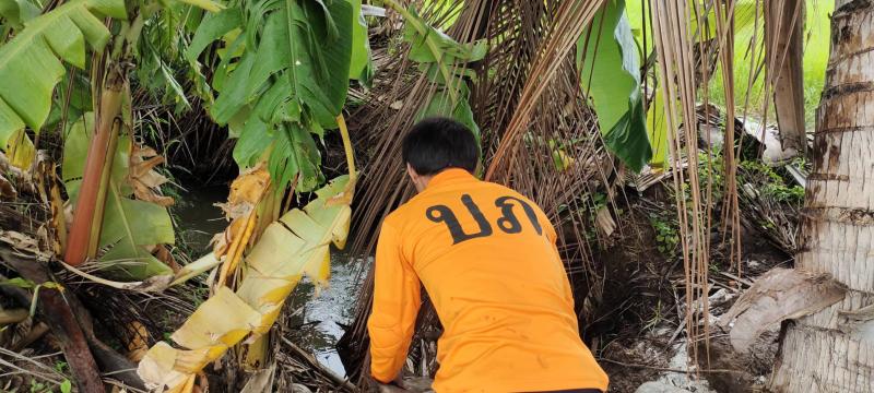 รายละเอียด : กิจกรรมออกสำรวจเส้นทางระบายน้ำและกำจัดสิ่งกีดขวางทางน้ำออกบริเวณเหมืองที่จะลงคลองสอยดาว
