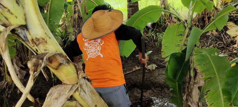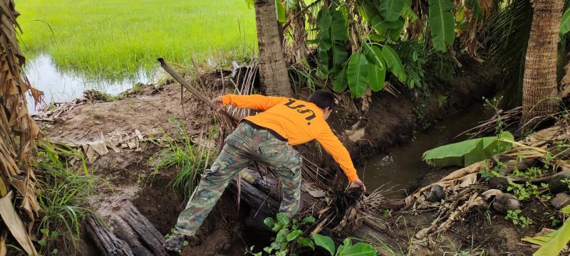 กิจกรรมออกสำรวจเส้นทางระบายน้ำและกำจัดสิ่งกีดขวางทางน้ำออกบริเวณเหมืองที่จะลงคลองสอยดาว