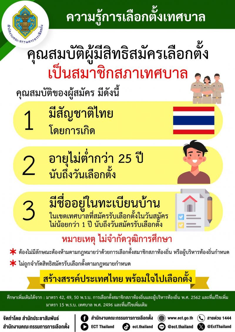 ความรู้การเลือกตั้งเทศบาล เรื่อง คุณสมบัติผู้มีสิทธิสมัครเลือกตั้ง เป็นนายกเทศมนตรี และสมาชิกสภาเทศบาล