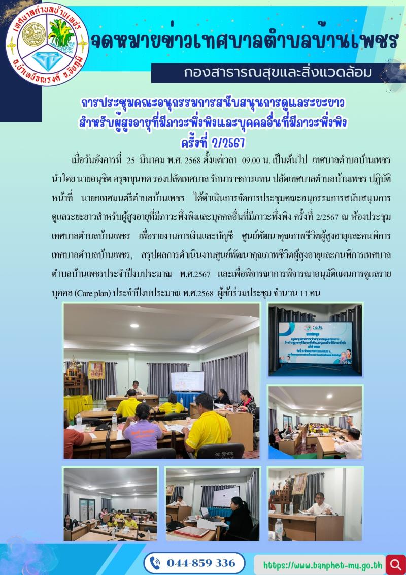 การประชุมคณะอนุกรรมการสนับสนุนการดูแลระยะยาว สำหรับผู้สูงอายุที่มีภาวะพึ่งพิงและบุคคลอื่นที่มีภาวะพึ่งพิง ครั้งที่ 22567