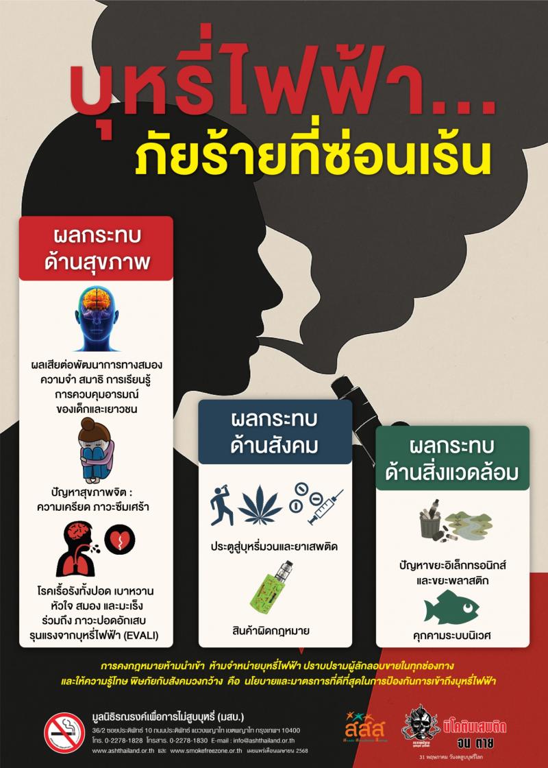 รายละเอียด : องค์การอนามัยโลกได้กำหนดให้วันที่ 31 พฤษภาคมของทุกปี เป็นวันงดสูบบุหรี่โลก โดยในปีนี้ องค์การอนามัยโลกได้กำหนดประเด็นการรณรงค์ไว้ว่า “Unmasking the Appeal: Exposing Industry Tactics on Tobacco and Nicotine Products” สำหรับประเทศไทย วันงดสูบบุหรี่โลก ประจำปี 2568 ได้กำหนดธีมรณรงค์สื่อสาร ในประเด็น “กระชากหน้ากากธุรกิจบุหรี่ บุหรี่ไฟฟ้า: นิโคตินเสพติด จน ตาย” เพื่อให้ประชาชนตระหนักถึงกลยุทธ์ที่อุตสาหกรรมยาสูบใช้ทำการตลาดเพื่อดึงดูดผู้บริโภค โดยเฉพาะกลุ่มเด็กและเยาวชน