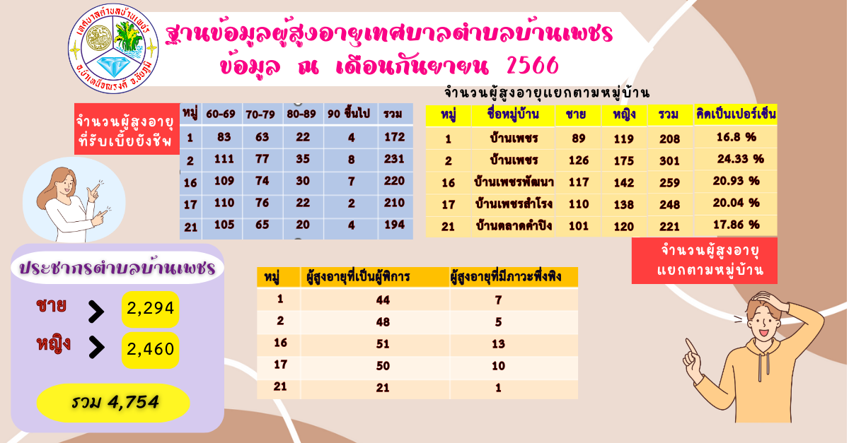 ฐานข้อมูลผู้สูงอายุเทศบาลตำบลบ้านเพชร ประจำปีงบประมาณ 2566